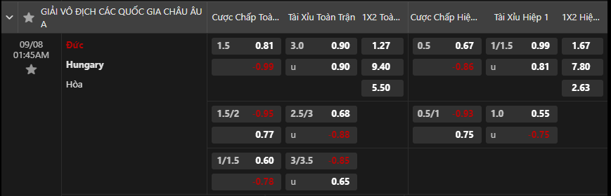 Soi kèo hiệp 1 Đức vs Hungary